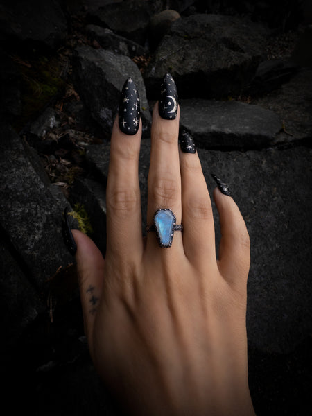 ✶ Choose your ring size in the drop down menu. If you require a different size not provided in the menu or are unsure of your size, choose the first option in the dropdown menu. You may also add a ring sizer to your order for an additional $3. It will be sent as soon as possible so that you may determine your size. Then send an email to customs@starstrung.com with your desired size or if you need help using the ring sizer.